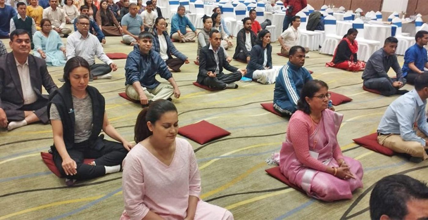 March 18, Kathmandu – The second day of the National Independent Party (Rastriya Swatantra Party – RASWAPA) MPs’ orientation program started with a session on yoga and meditation. The program commenced on Tuesday at Hotel Tulip in Lalitpur.