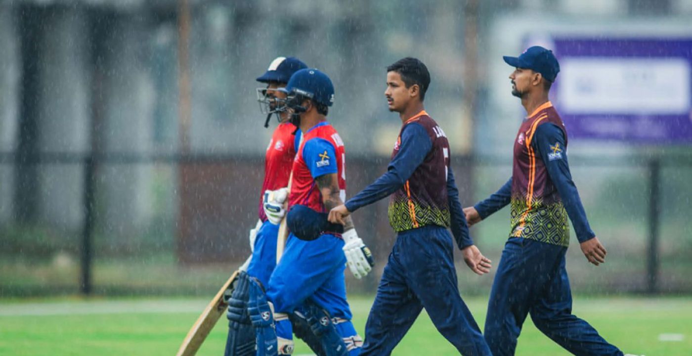 March 20, Birgunj – The Prime Minister’s Cup Men’s National Cricket Tournament, currently underway at Narayani Stadium in Birgunj, was interrupted by rain during the match between Karnali Province and Lumbini Province.
