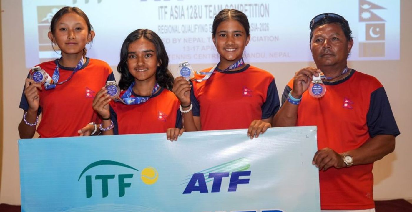 Nepal’s girls team secured second place at the ITF Asia 12 and Under Tennis Championship, earning qualification for the Asian finals scheduled to be held in Singapore. In the competition, India finished first, with Nepal coming in second. Sri Lanka took third place, Maldives fourth, and Pakistan last. In the boys category, India claimed first place by defeating Pakistan 3–0, while Nepal finished fourth. Kathmandu, 4 Baisakh.