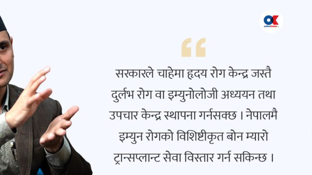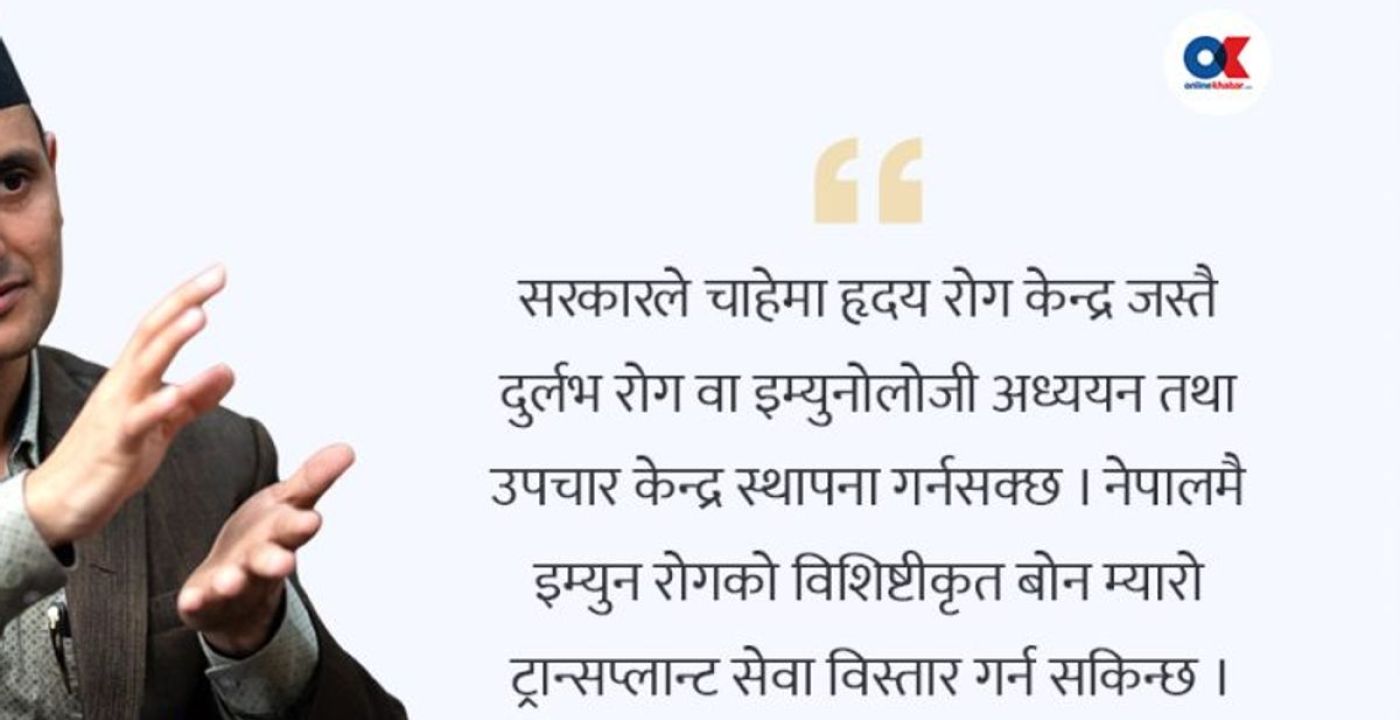 What steps should the government take to improve immunology services? The government could establish specialized rare disease and immunology research and treatment centers, similar to the Heart Disease Center. Expansion of bone marrow transplant services within Nepal is possible. However, these advances cannot be achieved by a single individual; medical educational institutions must adopt immunology as a faculty and introduce specialized training programs.