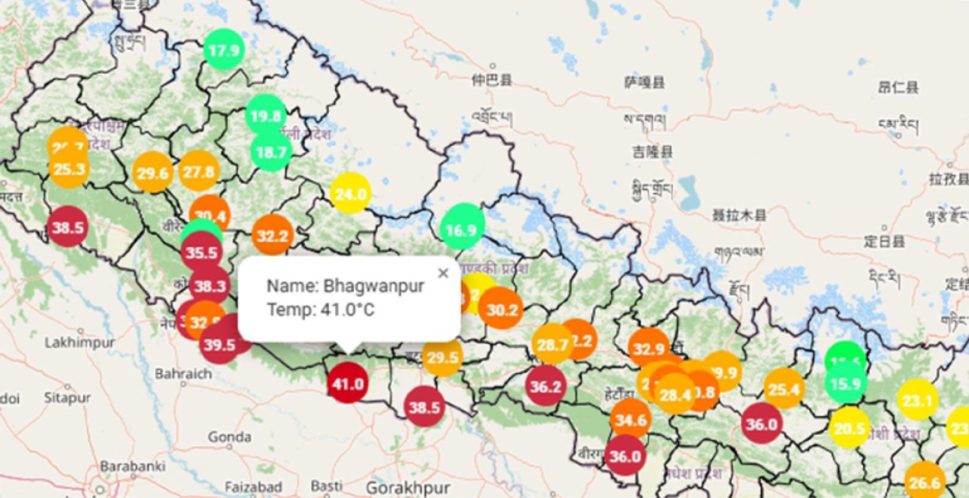 - Many parts of the country are experiencing rising temperatures and extreme heat, with the Department of Hydrology and Meteorology forecasting hot winds (‘Lu’) in the Terai districts.