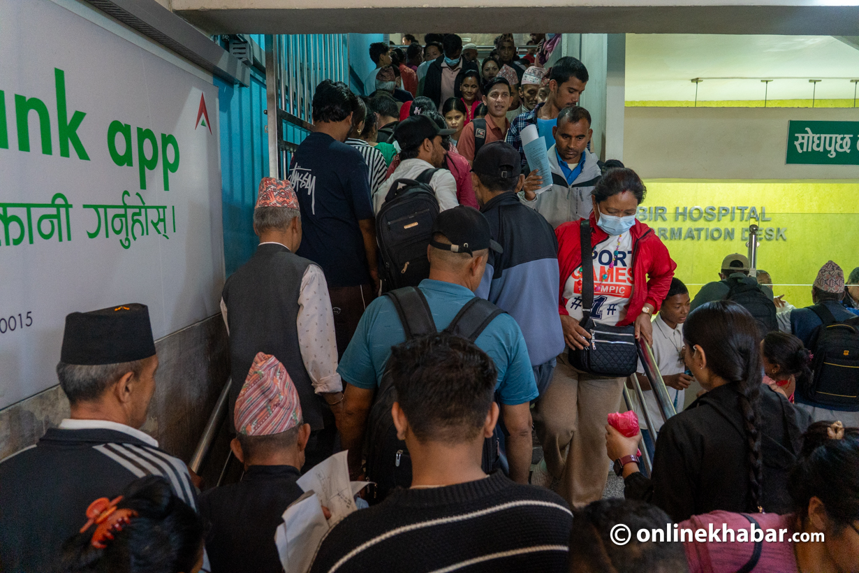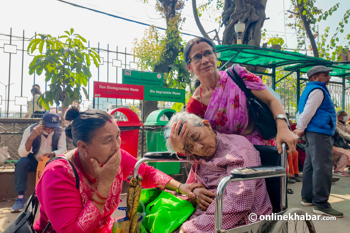 Krishna Prasad Tiwari from Gorkha said, “We arrived early this morning, but the crowd means we may have to stay in the hospital for two or three days to receive care.”