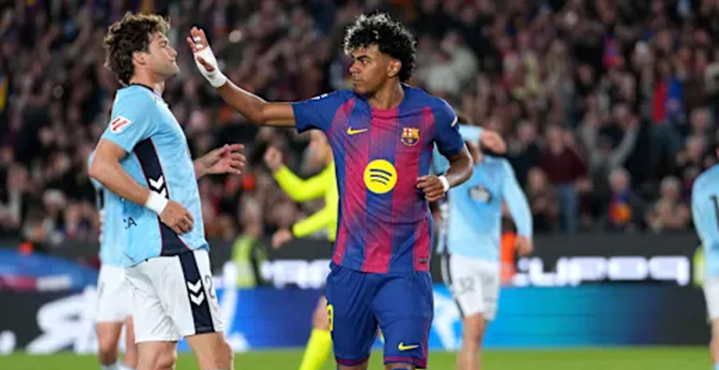 Lamin Yamal’s solitary goal helped league leaders Barcelona strengthen their top position by beating Celta Vigo 1-0 in last night’s match at the Camp Nou. The home side earned three points with a narrow victory, further extending their lead over second-placed Real Madrid to nine points. Yamal advanced Barcelona in the 40th minute by converting a penalty. Although Ferran Torres scored in the 55th minute, the goal was disallowed after VAR review.