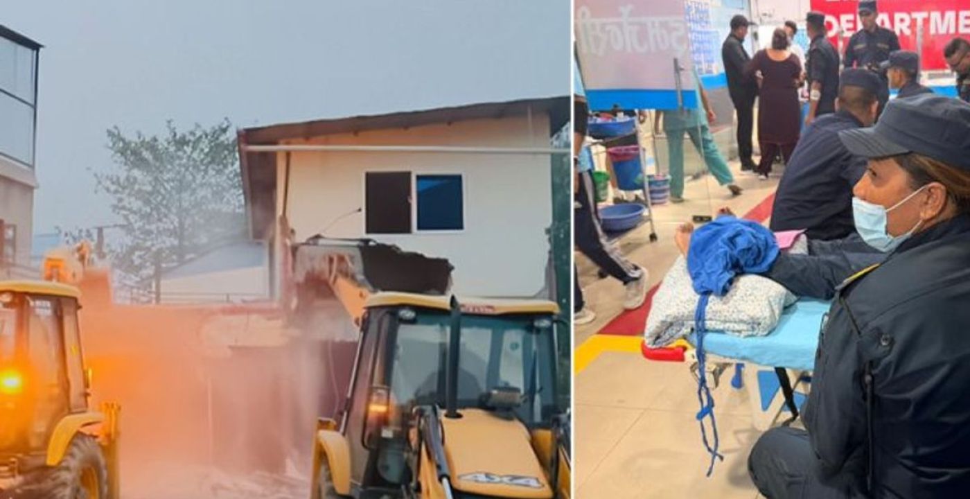 In the Manohara riverbank area of Kathmandu Valley, a dozer attempting to demolish encroachments beyond the boundary was attacked with stones. Approximately a dozen personnel from the Armed Police and Nepal Police were injured in the incident, though their condition is reported to be stable, according to police sources. The police halted the demolition work for the day and retreated, while locals requested that the demolition be carried out tomorrow. April 25, Kathmandu.
