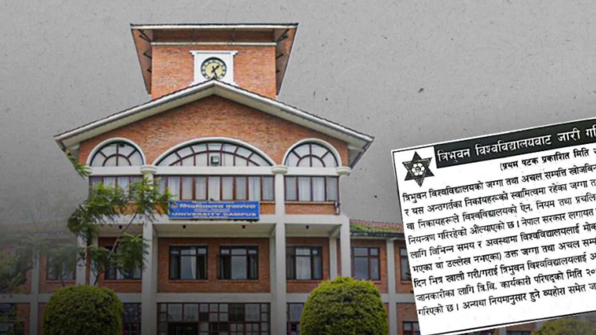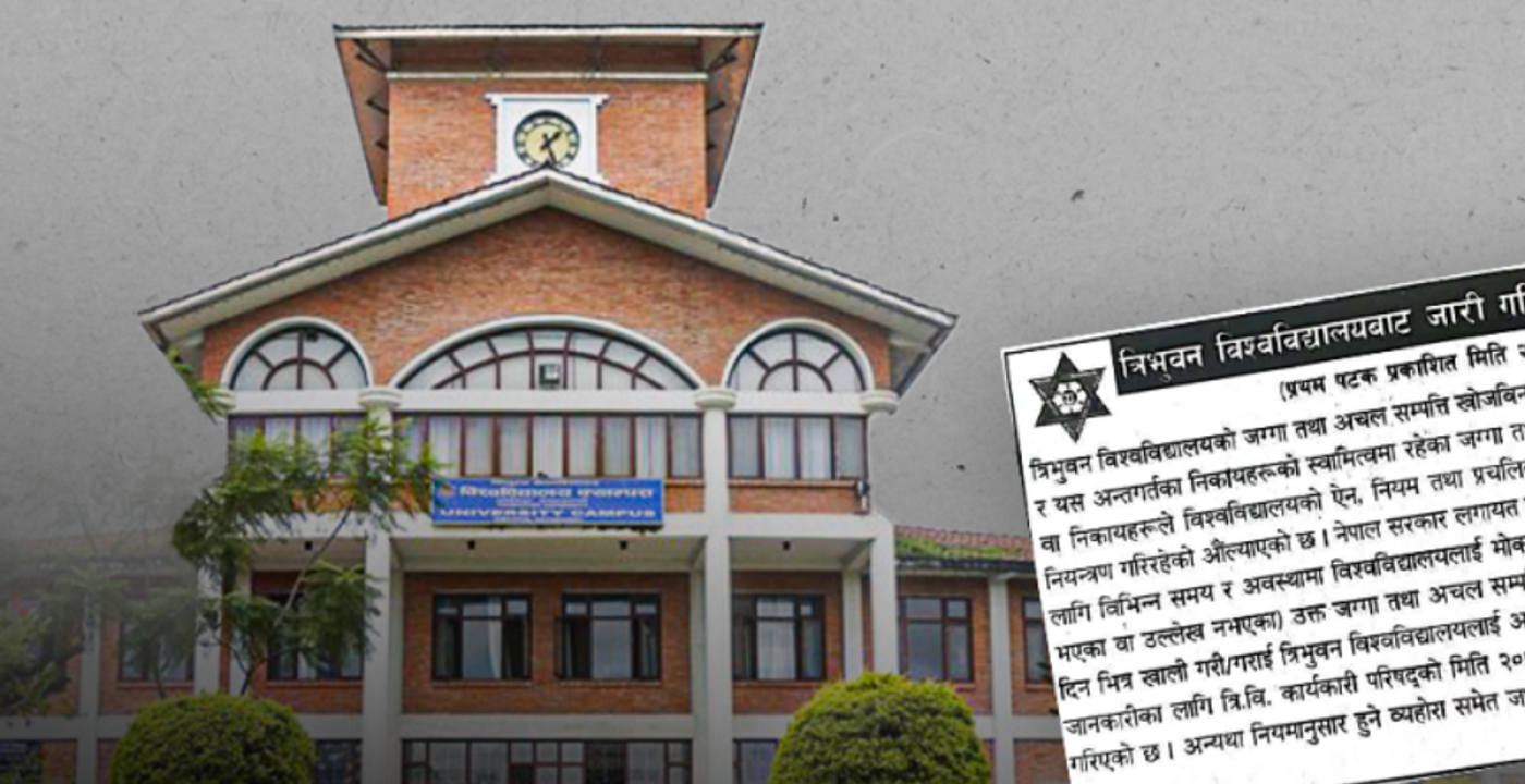 Tribhuvan University has formally notified 18 organizations to vacate land unlawfully occupied on its property. According to a report, over 2,000 ropanis of the university’s total 5,050 ropanis of land have been encroached upon by various associations without authorization. An investigative committee has recommended that the Commission for the Investigation of Abuse of Authority (CIAA) and the Central Investigation Bureau (CIB) conduct inquiries into those responsible for the encroachment.