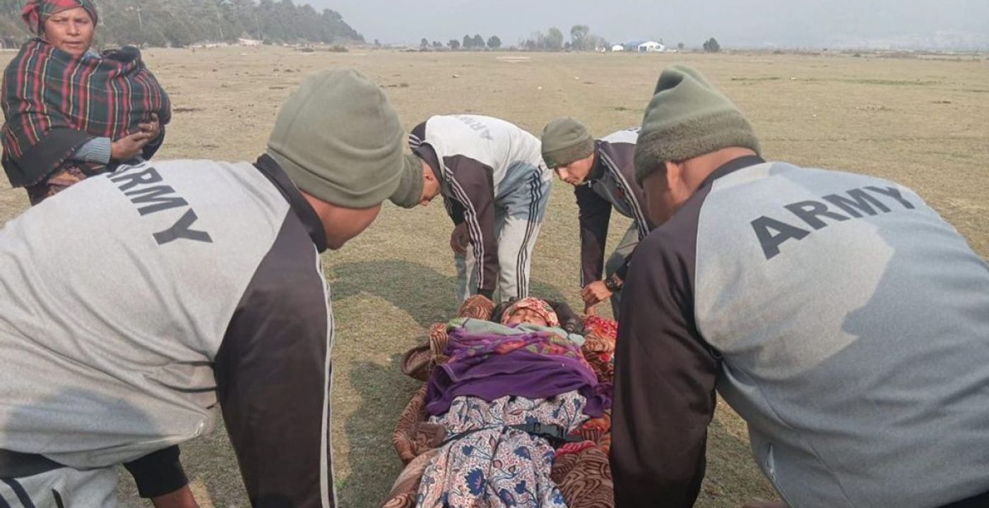 April 27, Kathmandu – The Nepal Army has successfully rescued a pregnant woman suffering from labor pains. The rescue operation was carried out by a team dispatched from Durgabhajan in Gulmi, which was on security duty at the Dhorpatan Hunting Reserve. The woman, from Devi Than in Dhorpatan-8, was safely taken to the community health post in Dhorpatan for medical treatment.